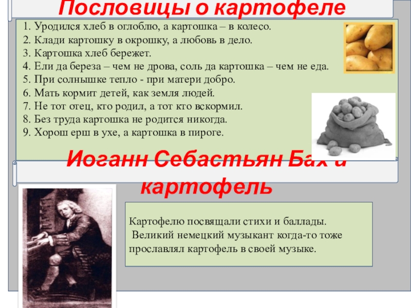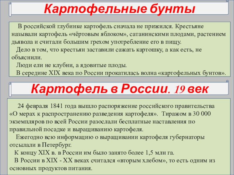 В России в XIX - XX веках считался «вторым хлебом», то есть одним из основных продуктов питания.