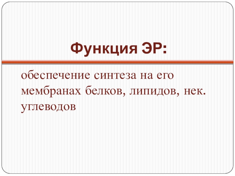 Функция ЭР:обеспечение синтеза на его мембранах белков, липидов, нек. углеводов