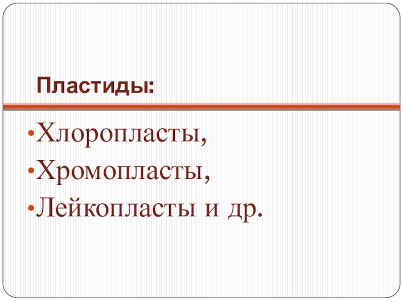 Пластиды:Хлоропласты,Хромопласты,Лейкопласты и др.