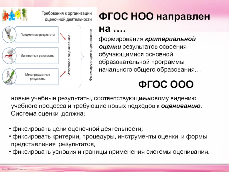 новые учебные результаты, соответствующие новому видению учебного процесса и требующие новых подходов к оцениванию. Система оценки должна: