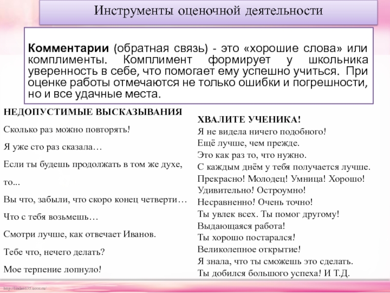 Приемы формирующего оценивания