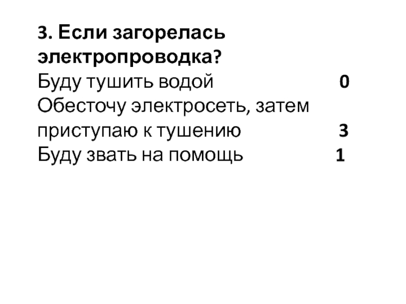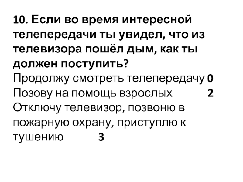 Отключу телевизор, позвоню в пожарную охрану, приступлю к тушению 3