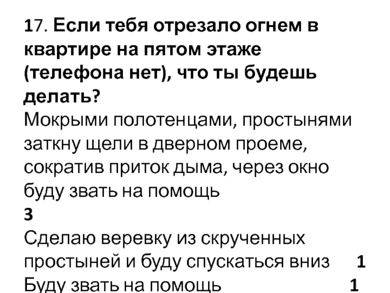 Слайд 1717. Если тебя отрезало огнем в квартире на пятом этаже (телефона