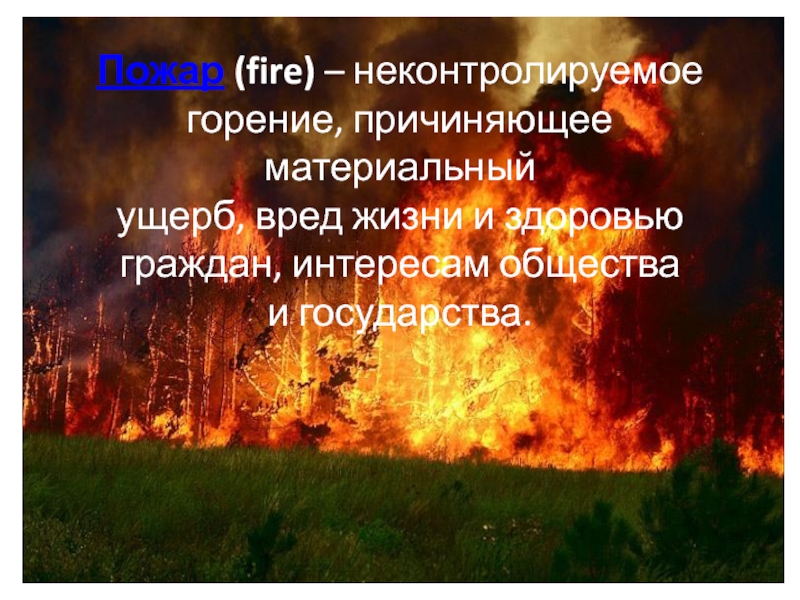 Слайд 4Пожар (fire) – неконтролируемое