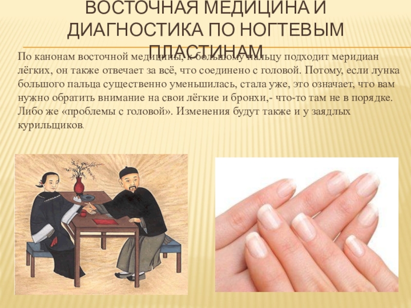 Слайд 7Восточная медицина и диагностика по ногтевым пластинам