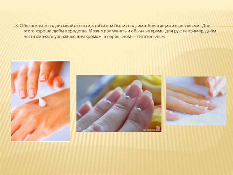 Слайд 303. Обязательно подпитывайте ногти, чтобы они были гладкими, блестящими и розовыми.