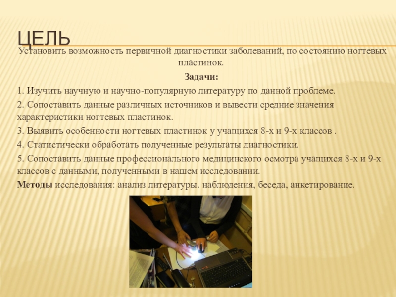 Установить возможность первичной диагностики заболеваний, по состоянию ногтевых пластинок.
