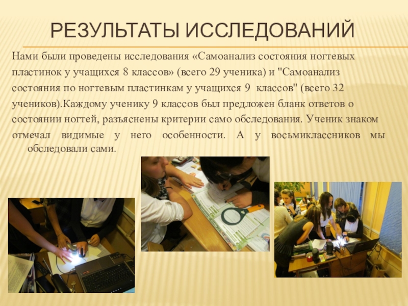 Нами были проведены исследования «Самоанализ состояния ногтевых