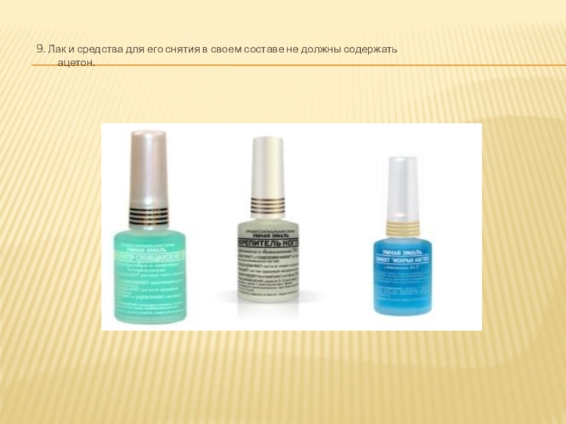 Слайд 369. Лак и средства для его снятия в своем составе не