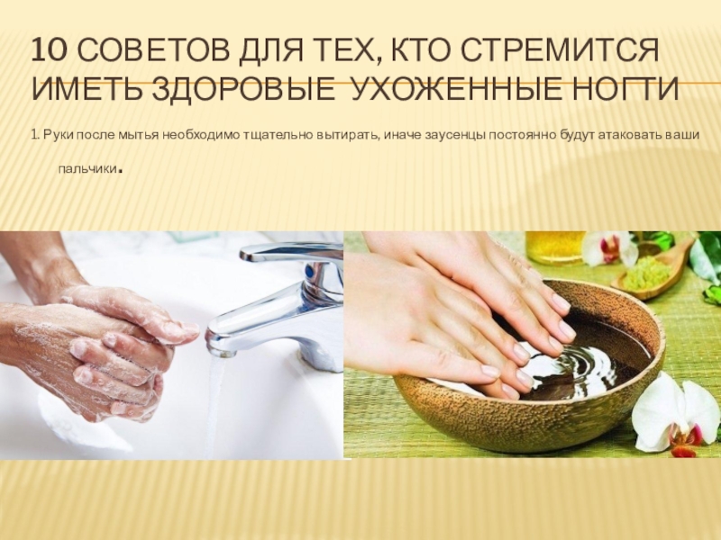 Слайд 2810 советов для тех, кто стремится иметь здоровые ухоженные ногти