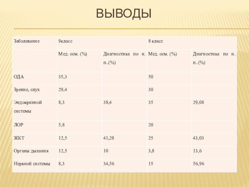 5. Сопоставить данные профессионального медицинского осмотра учащихся 8-х и 9-х классов с данными, полученными в нашем исследовании.