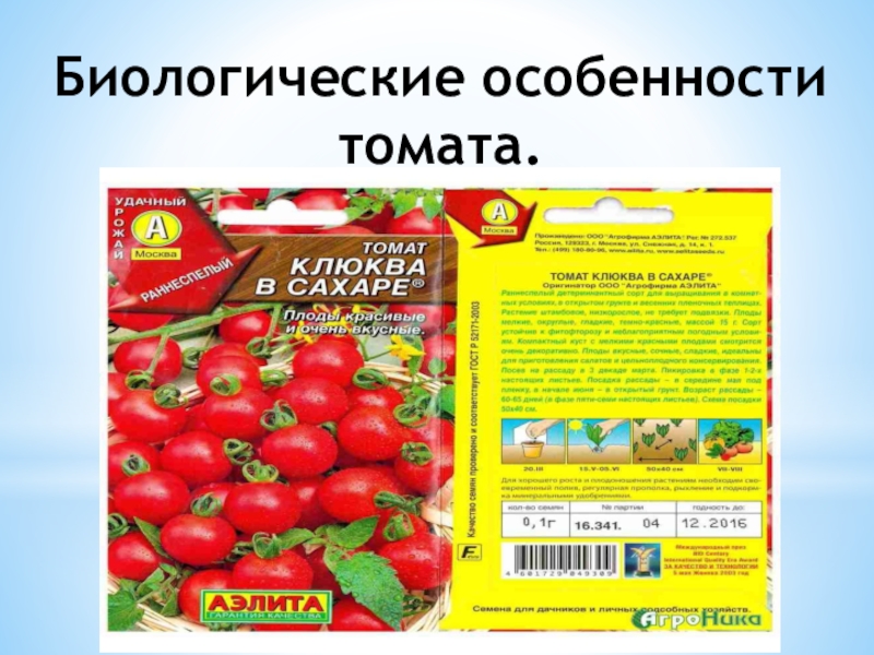 Слайд 3Объект исследования –томат сорта «Клюква в сахаре».