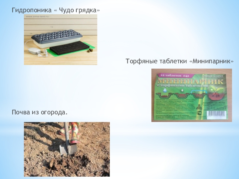 Гидропоника « Чудо грядка»Торфяные таблетки «Минипарник»Почва из огорода.