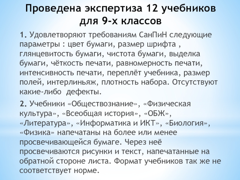 определение соответствия учебников для 9 класса гигиеническим нормам и требованиям.