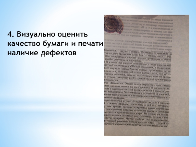 Слайд 134. Визуально оценить качество бумаги и печати, наличие дефектов