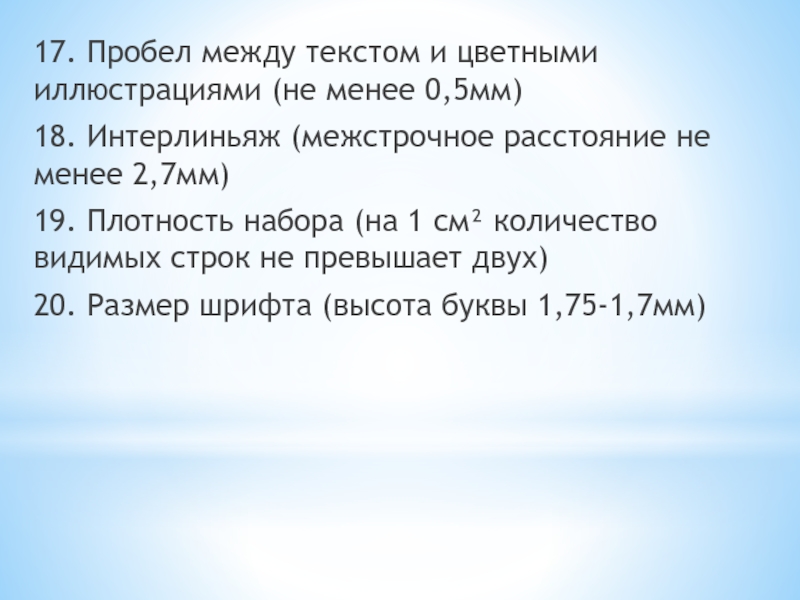 19. Плотность набора (на 1 см² количество видимых строк не превышает двух)