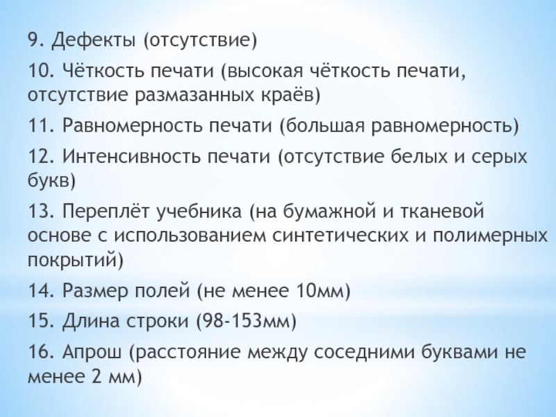 Слайд 6Гигиенические требования по оформлению школьных учебников для 9 класса