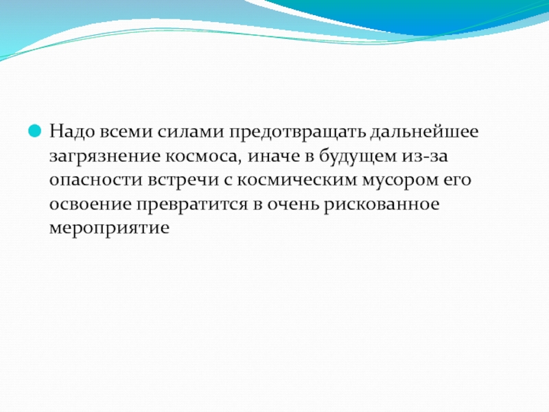 опасности встречи с космическим мусором его освоение превратится в очень рискованное мероприятие
