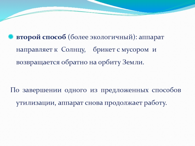 Слайд 27второй способ (более экологичный): аппарат направляет к Солнцу, брикет с