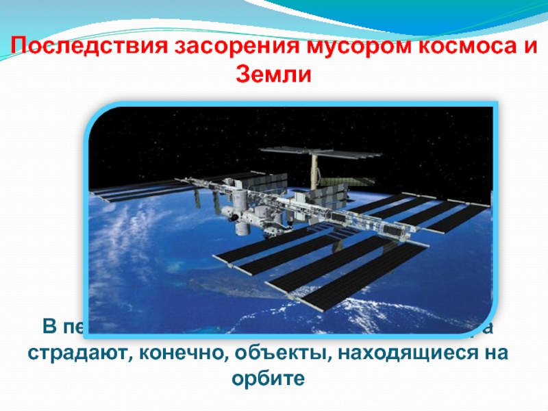 Слайд 10В первую очередь от космического мусора страдают, конечно, объекты, находящиеся на