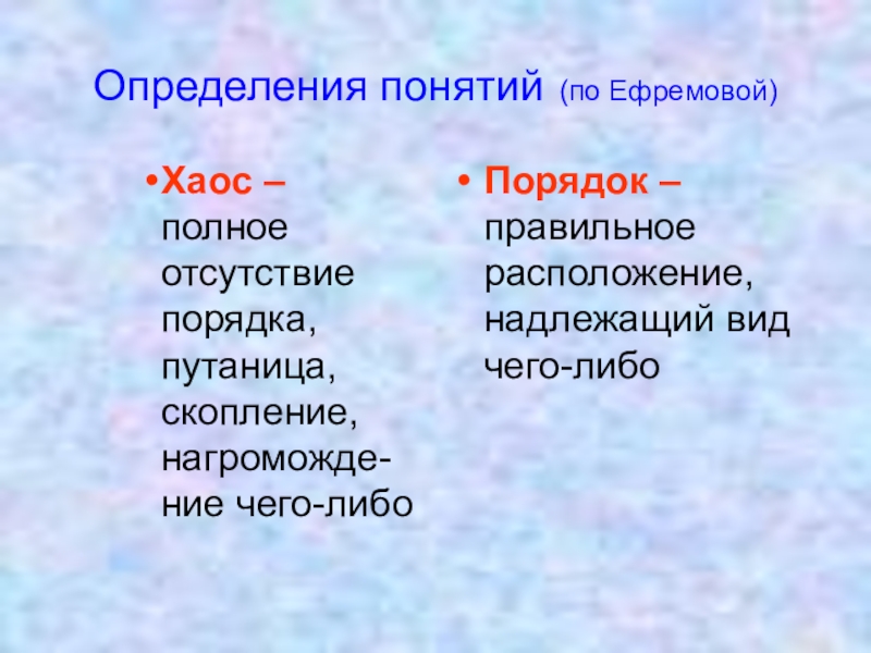 Порядок – правильное расположение, надлежащий вид чего-либо