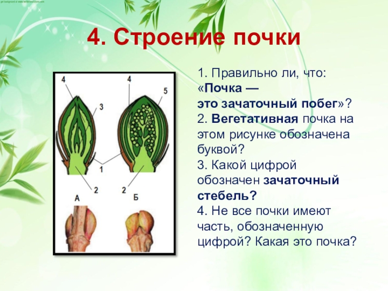 1. Правильно ли, что: «Почка — это зачаточный побег»?