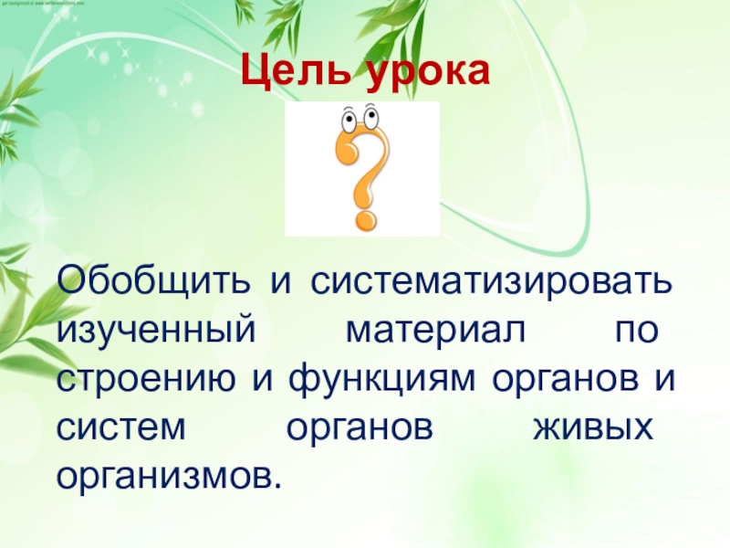 Обобщить и систематизировать изученный материал по строению и функциям органов