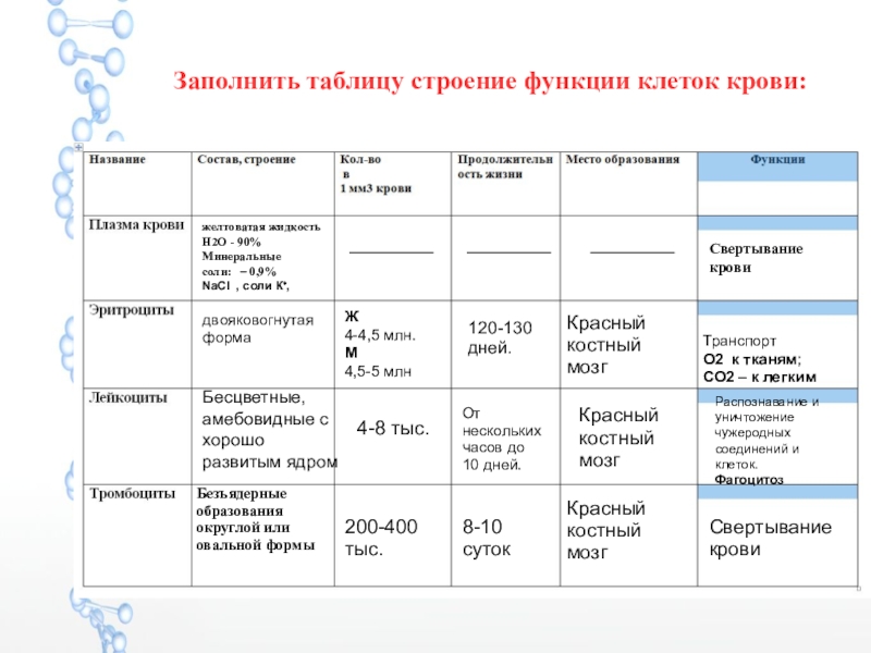 Формулирует задание составить схему «Состав крови» в тетрадях.
