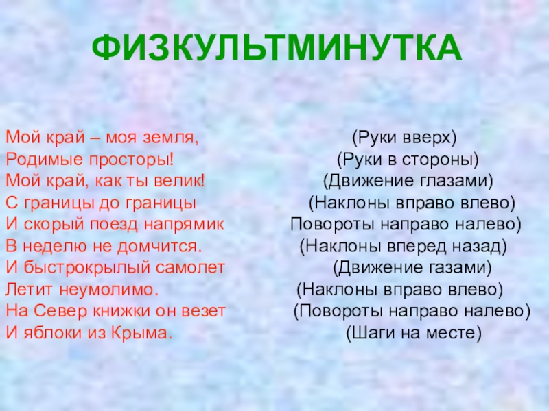 ФИЗКУЛЬТМИНУТКАМой край – моя земля,