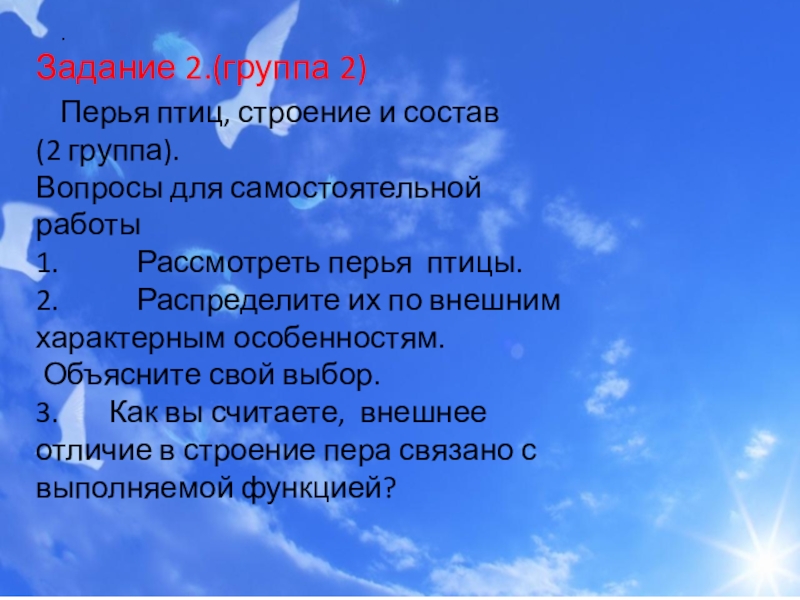 1. Рассмотреть перья птицы.