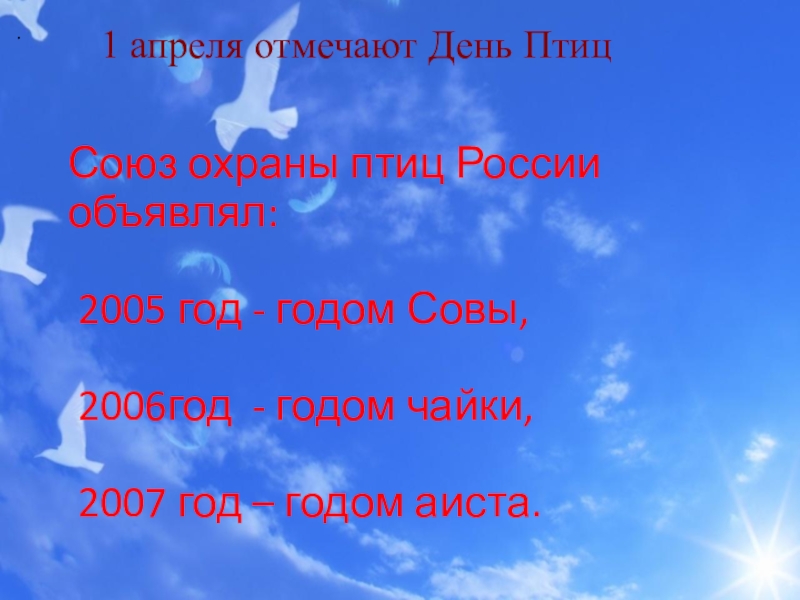 1 апреля отмечают День Птиц