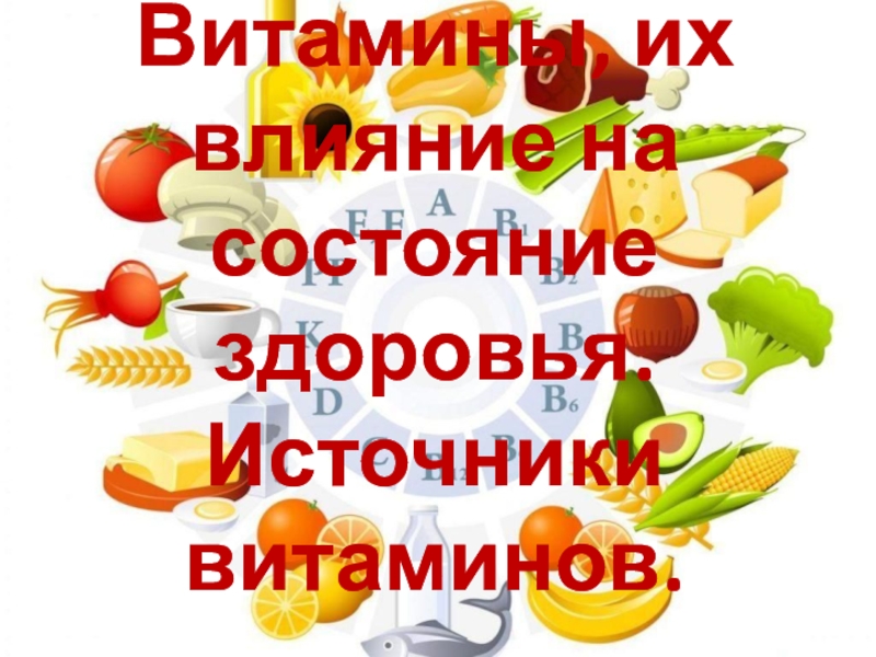 Слайд 9Витамины, их влияние на состояние здоровья. Источники витаминов.