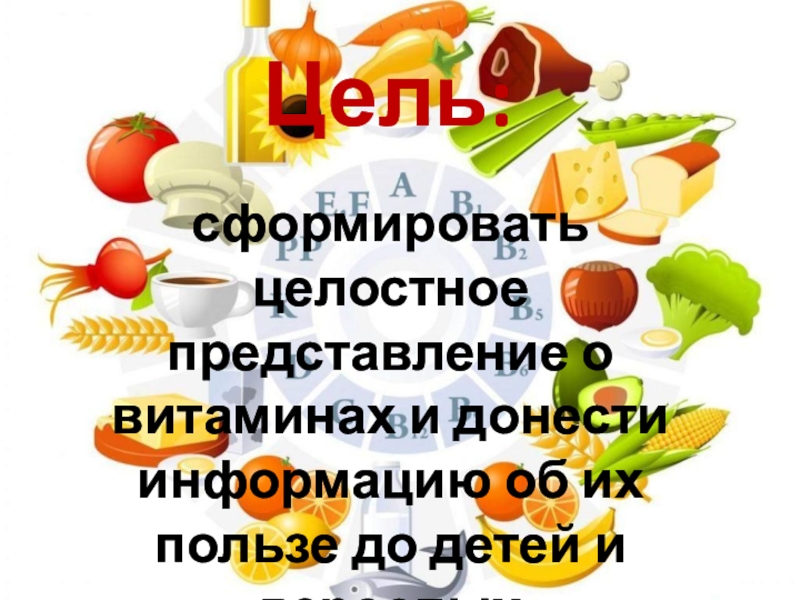 Цель:сформировать целостное представление о витаминах и донести информацию об их пользе до детей и взрослых