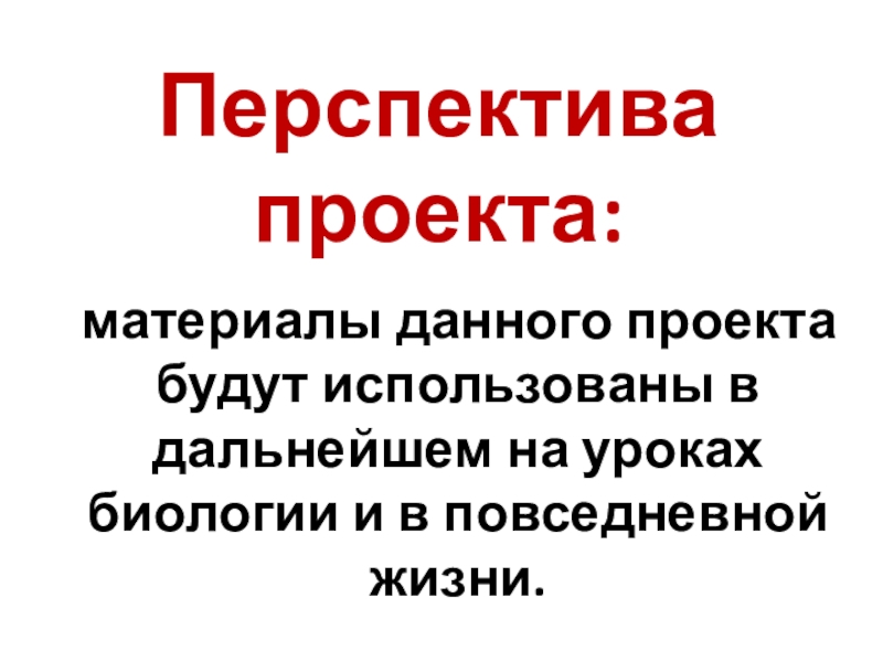 Перспектива проекта:  материалы данного проекта будут использованы в дальнейшем на уроках биологии и в повседневной жизни.
