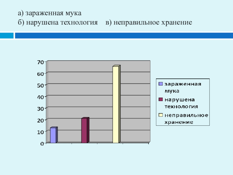 Слайд 16а) зараженная мука б) нарушена технология в) неправильное хранение