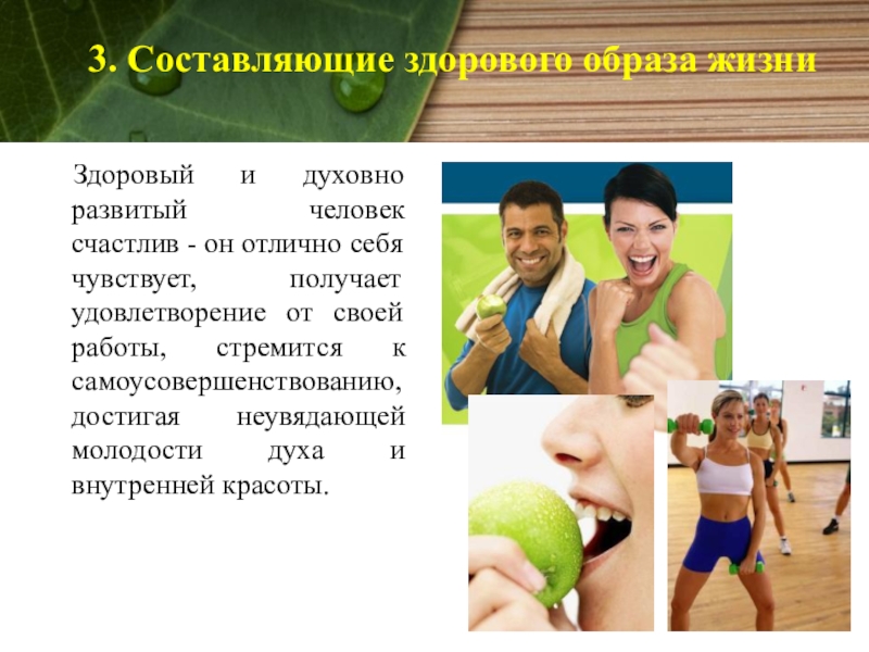 Слайд 3Здоровый образ жизни позволяет нам ощущать себя полноценными, востребованными членами общества.