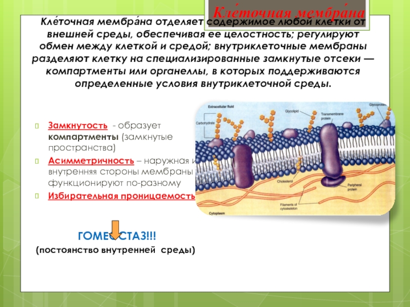 Асимметричность – наружная и внутренняя стороны мембраны функционируют по-разному