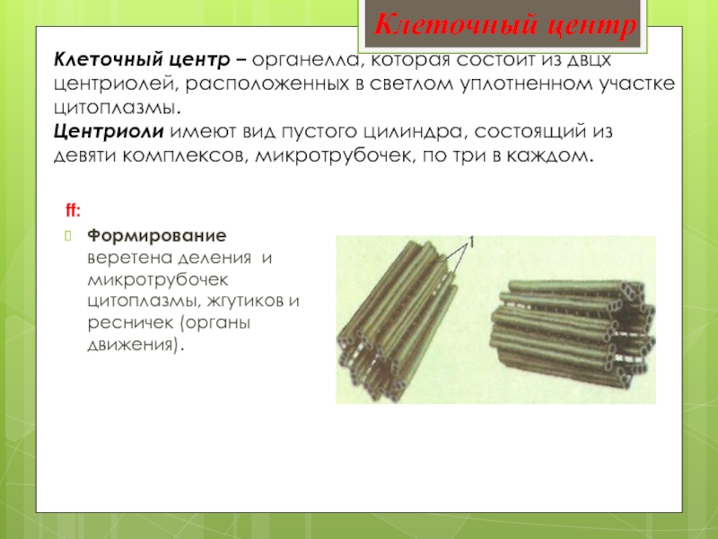 Формирование веретена деления и микротрубочек цитоплазмы, жгутиков и ресничек (органы движения).