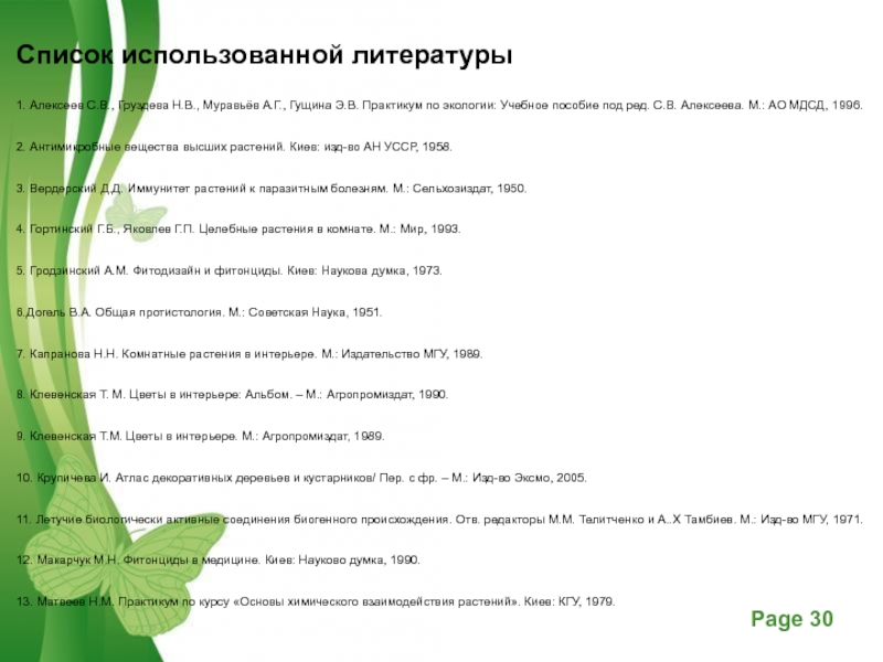 5. Гродзинский А.М. Фитодизайн и фитонциды. Киев: Наукова думка, 1973.