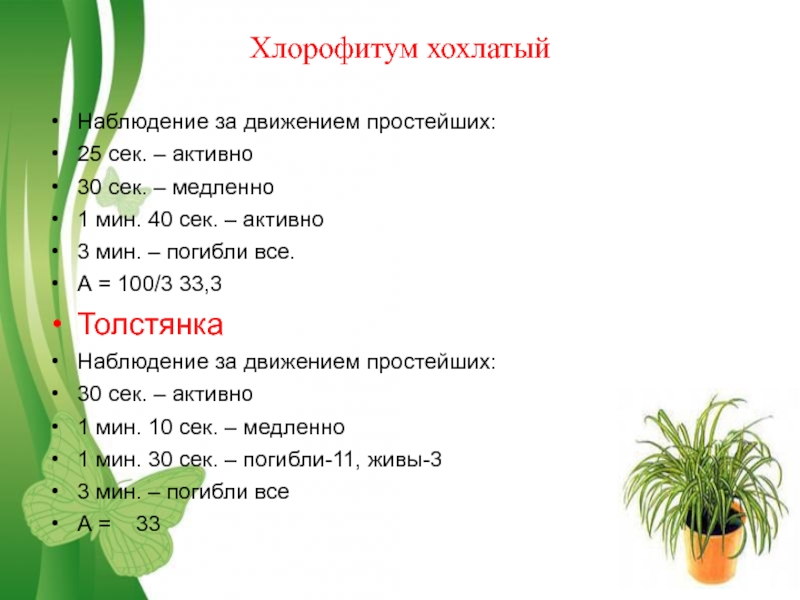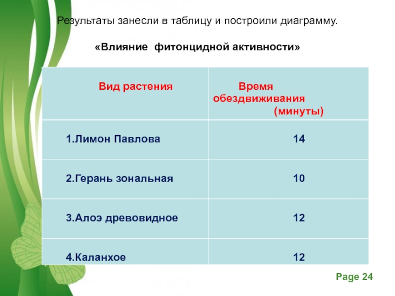 Слайд 15Вывод: разные виды комнатных растений проявляют различную фитонцидную активность клеточного сока.