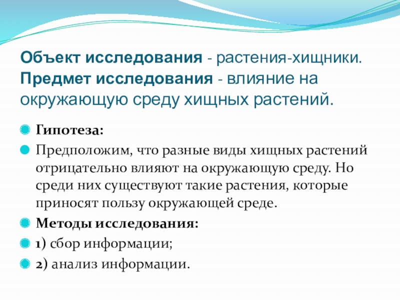 3) выявить, какие хищные растения окружают нас, и какое влияние они оказывают;