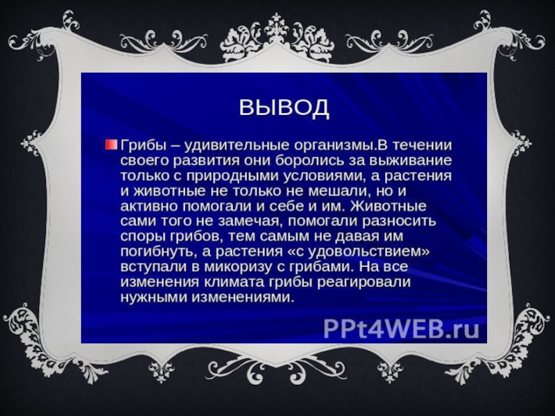 Это сайт презентаций, где можно хранить и обмениваться своими презентациями, докладами, проектами, шаблонами в формате PowerPoint с другими пользователями. Мы помогаем школьникам, студентам, учителям, преподавателям хранить и обмениваться учебными материалами.