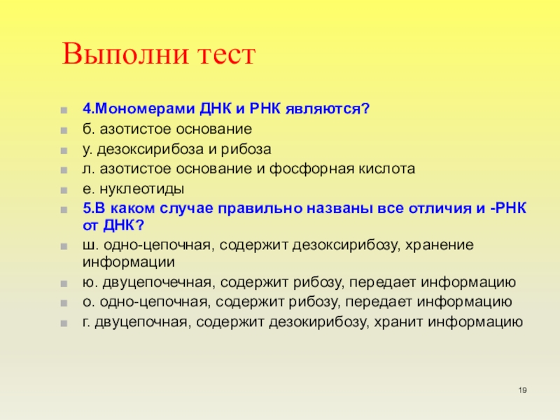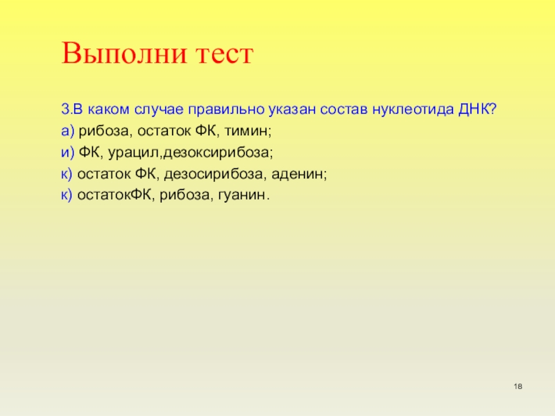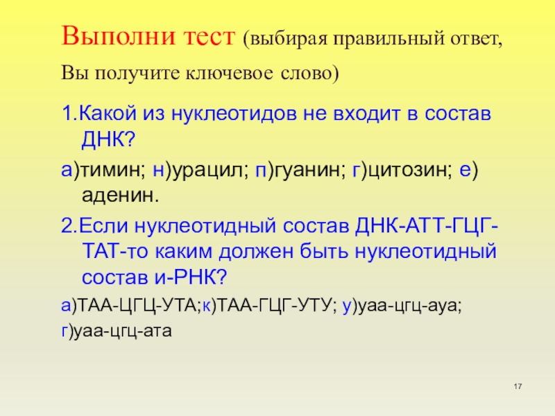 Слайд 17Выполни тест (выбирая правильный ответ, Вы получите ключевое слово)