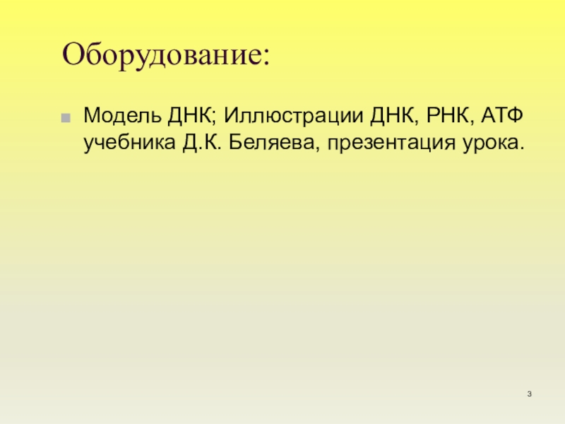Модель ДНК; Иллюстрации ДНК, РНК, АТФ учебника Д.К. Беляева, презентация