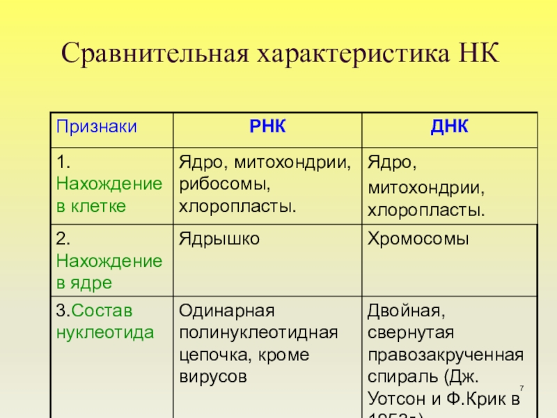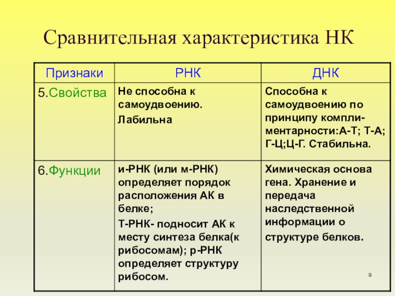 ш. одно-цепочная, содержит дезоксирибозу, хранение информации