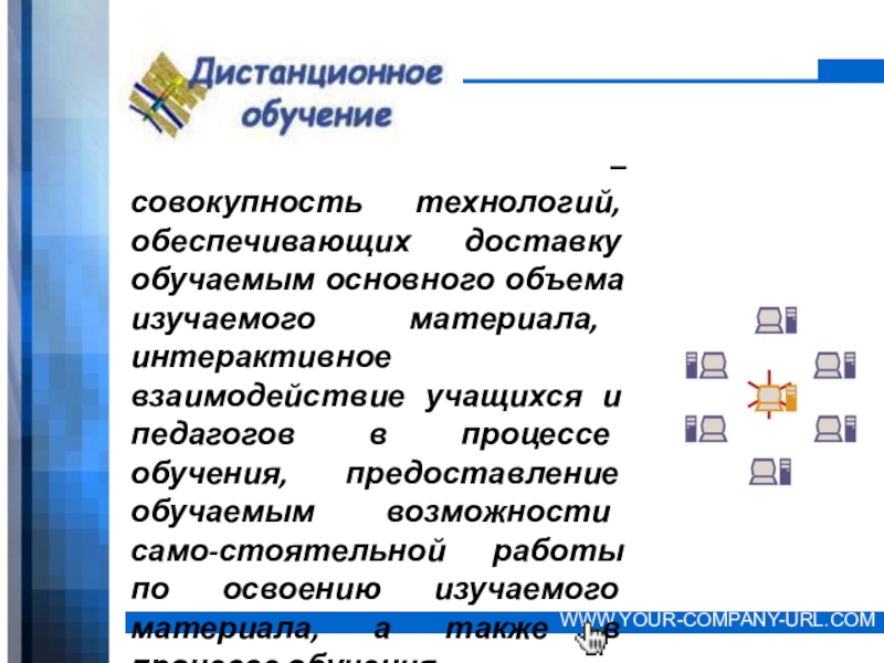 В основе дистанционного обучения заложены педагогические технологии разнотемпового обучения, самостоятельность в самообразовании школьников по различным образовательным областям, сочетание различных форм и методов взаимодействия учителя и ученика.