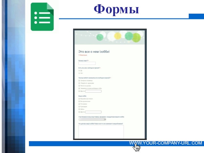 Это сайт презентаций, где можно хранить и обмениваться своими презентациями, докладами, проектами, шаблонами в формате PowerPoint с другими пользователями. Мы помогаем школьникам, студентам, учителям, преподавателям хранить и обмениваться учебными материалами.