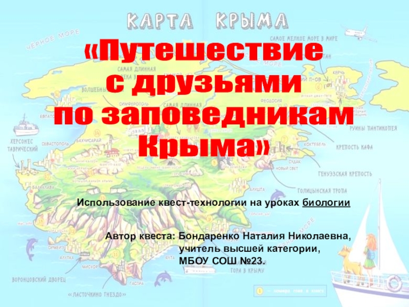 «Путешествие с друзьями по заповедникамКрыма»Использование квест-технологии на уроках биологии Автор квеста: Бондаренко Наталия Николаевна,