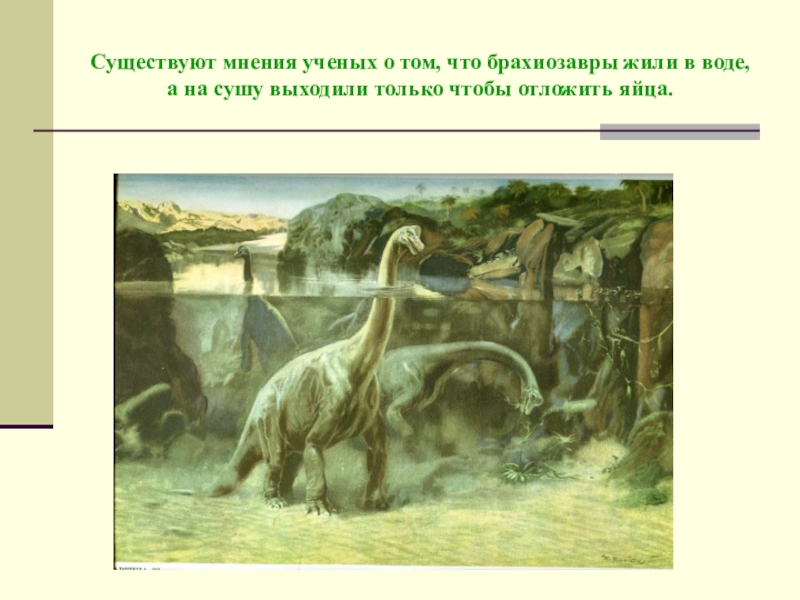 Слайд 21Существуют мнения ученых о том, что брахиозавры жили в воде, а