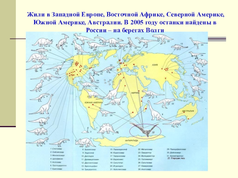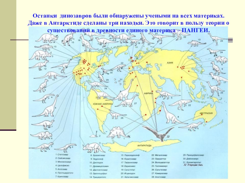 Слайд 4Останки динозавров были обнаружены учеными на всех материках. Даже в Антарктиде